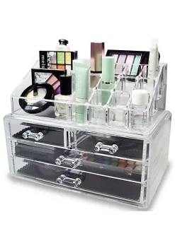 OnDisplay Andrea Deluxe Acrylic Cosmetic/Jewelry Organization Station w/Geode knobs – Natural/Gold
