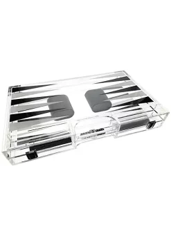 OnDisplay Luxe Acrylic Backgammon Set – Deluxe Portable Folding Game Set with Dice and Cups (Gold)