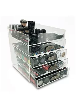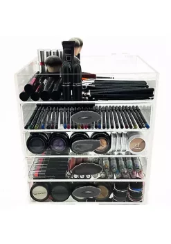 OnDisplay Ultimate Diva Cosmetic Organization Station – 12″ Cube – Gold/Silver Agate (Black/Silver)
