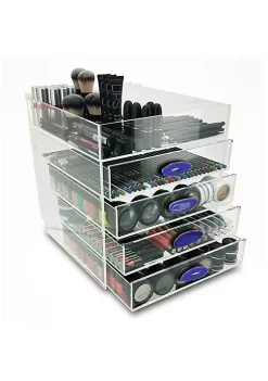 OnDisplay Ultimate Diva Cosmetic Organization Station – 12″ Cube – Gold/Silver Agate (Blue/Silver)