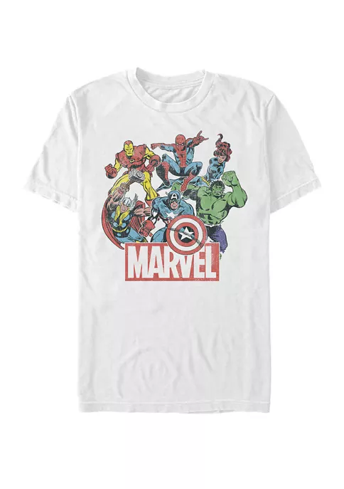 Marvel Avengers The Avengers Team Retro Comic Short Sleeve Graphic T-Shirt