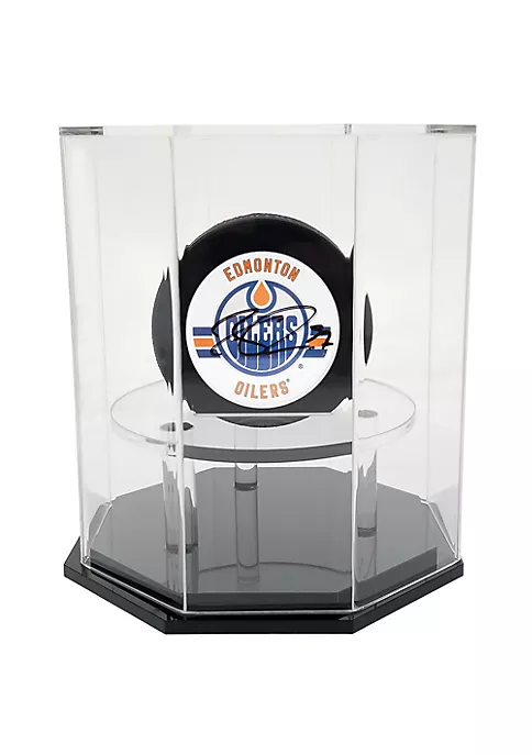 OnDisplay Deluxe UV-Protected Hockey Puck Display Case – Octagon Black Base