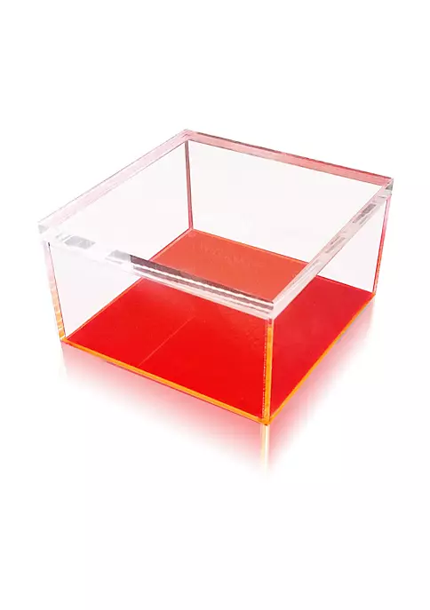 From the leading manufacturer in acrylic storage comes the ultimate luxury treasure box. Constructed of the highest grade clear and electric neon acrylic, the Electric Neon Treasure Box will be a true conversation starter in any home. Each box is entirely handmade using our highest grade Ultra clear acrylics. The base is made of our newest electric neon acrylic which truly looks electric even in low light. You will swear it is battery powered with LED lights but the way it reflects against the clear acrylic walls. Features an ultra thick 20mm (0.8″) thick removable lid. The entire unit measure about 8.25″ x 8.25″ x 4.75″ tall. Outer frame is made of 5mm (0.2″) thick Ultra clear acrylic. Perfect for storing cosmetics, jewelry, hair products, candies, and any other objects that you may want ot glamorously showcase. Also available in a larger size (9.8″ x 9.8″ x 4.9″)