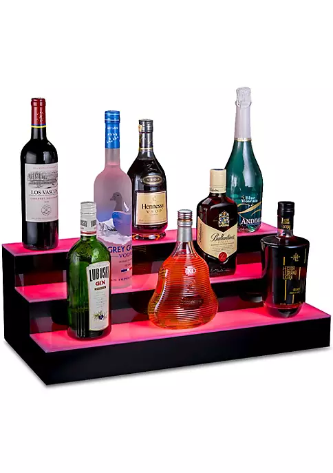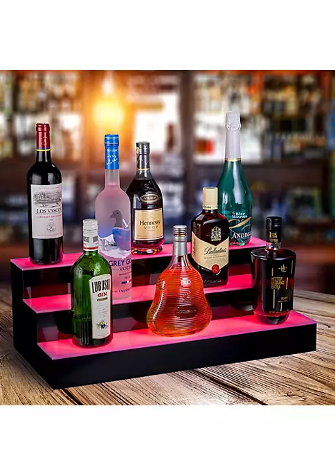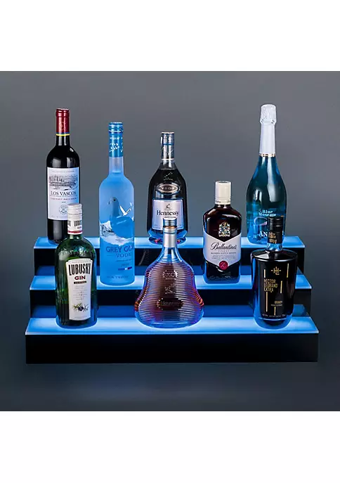 Our Luxe Acrylic LED Lighted Bar Liquor Display Stage Display is a great way to showcase your liquor collection in your man cave or for your actual bar. Complete with RF wireless remote control, each stage can be expanded by connecting multiple units together to build the size you need (sets bigger than 3 units will all utilize the same remote but it is recommended to use a separate power supply for sets bigger than 3 units).