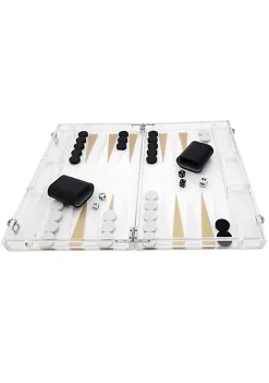 OnDisplay Luxe Acrylic Backgammon Set – Deluxe Portable Folding Game Set with Dice and Cups (Gold)