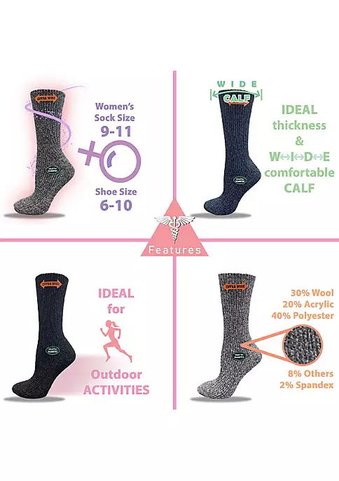 Sierra Socks Women Regenerated Wool Diabetic Outdoor Hiking Extra Wide Calf Socks