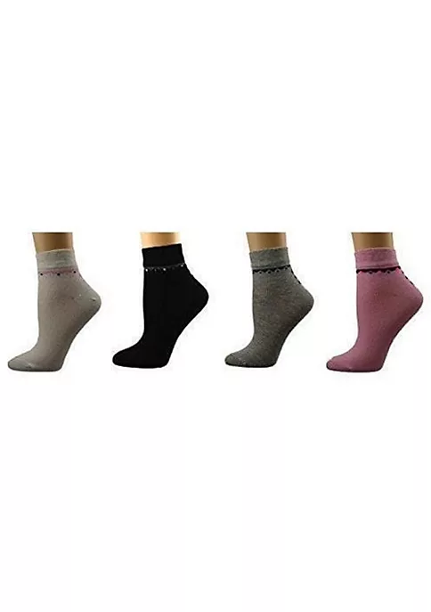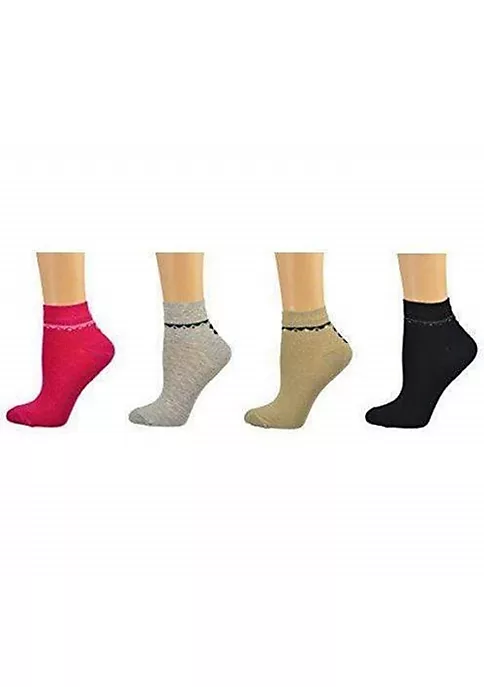 Sierra Socks Women’s Bamboo Low Cut Quarter 2 & 4-Pairs Picot Scalloped Edge Socks (Blue/Ivory)