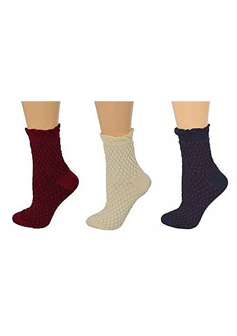Sierra Socks Women’s Cotton Small Diamond Pattern Quarter High 3 Pair Pack Socks