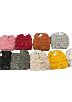 Sierra Socks Ponytail Beanie Women’s Big Girls Ribbed Cozy Hats (Marled Black)